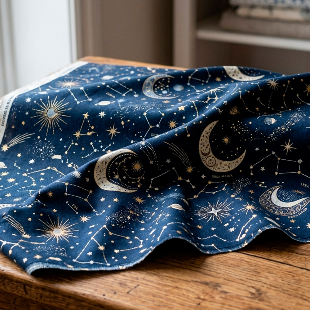 Stars, moons, constellations, planets, and cosmic mythology have been quietly building for a few years, but 2026 sees them maturing into something richer and more layered than the boho moon-and-stars aesthetic of recent years. Think deep indigos and midnight blues with gold and rust, ancient astronomical charts reimagined, the mysteries of the universe rendered with a sense of reverence and awe. This is not just “stars on a dark background.” It is something that asks: what does it feel like to be small in an infinite universe, and find that comforting rather than terrifying?