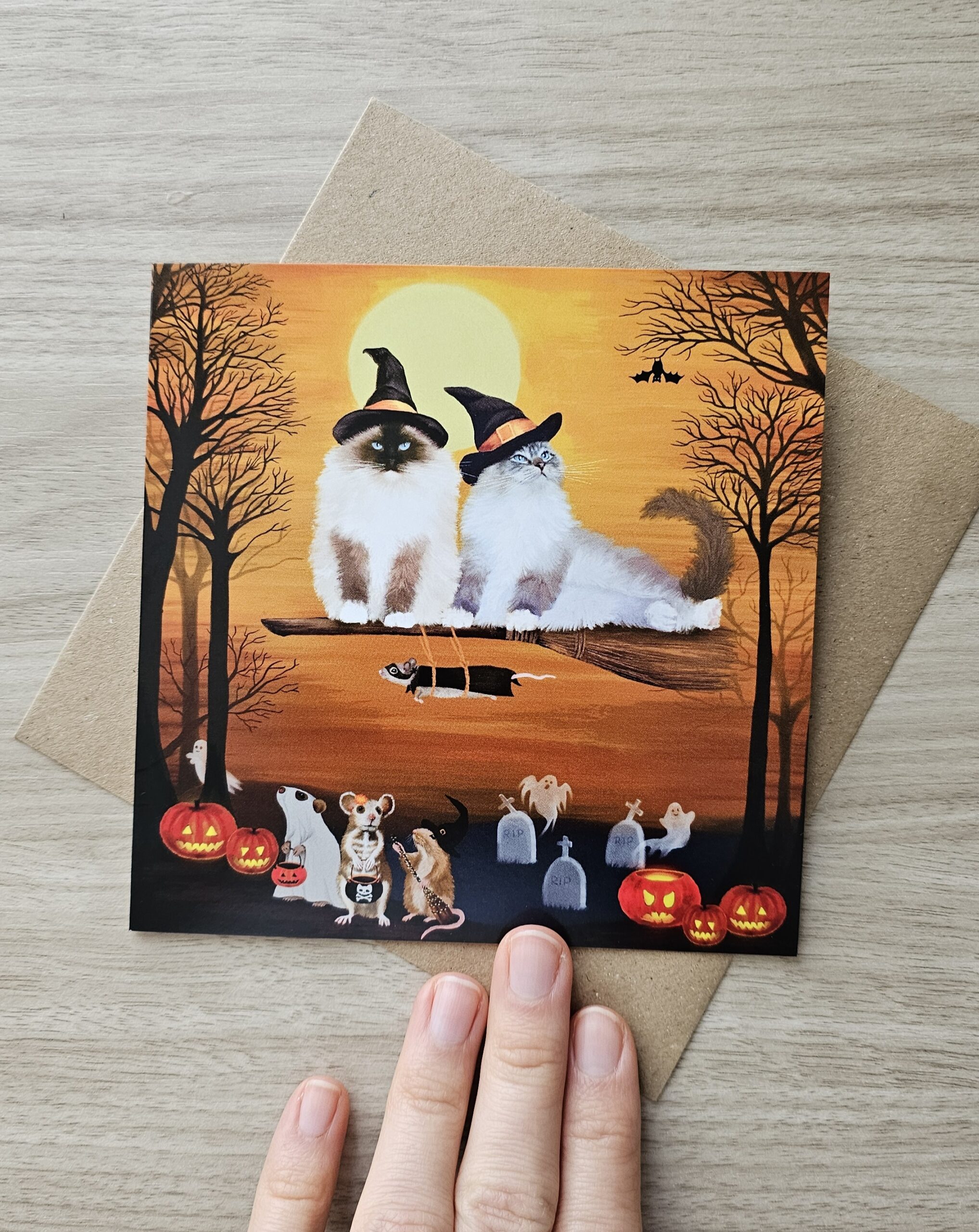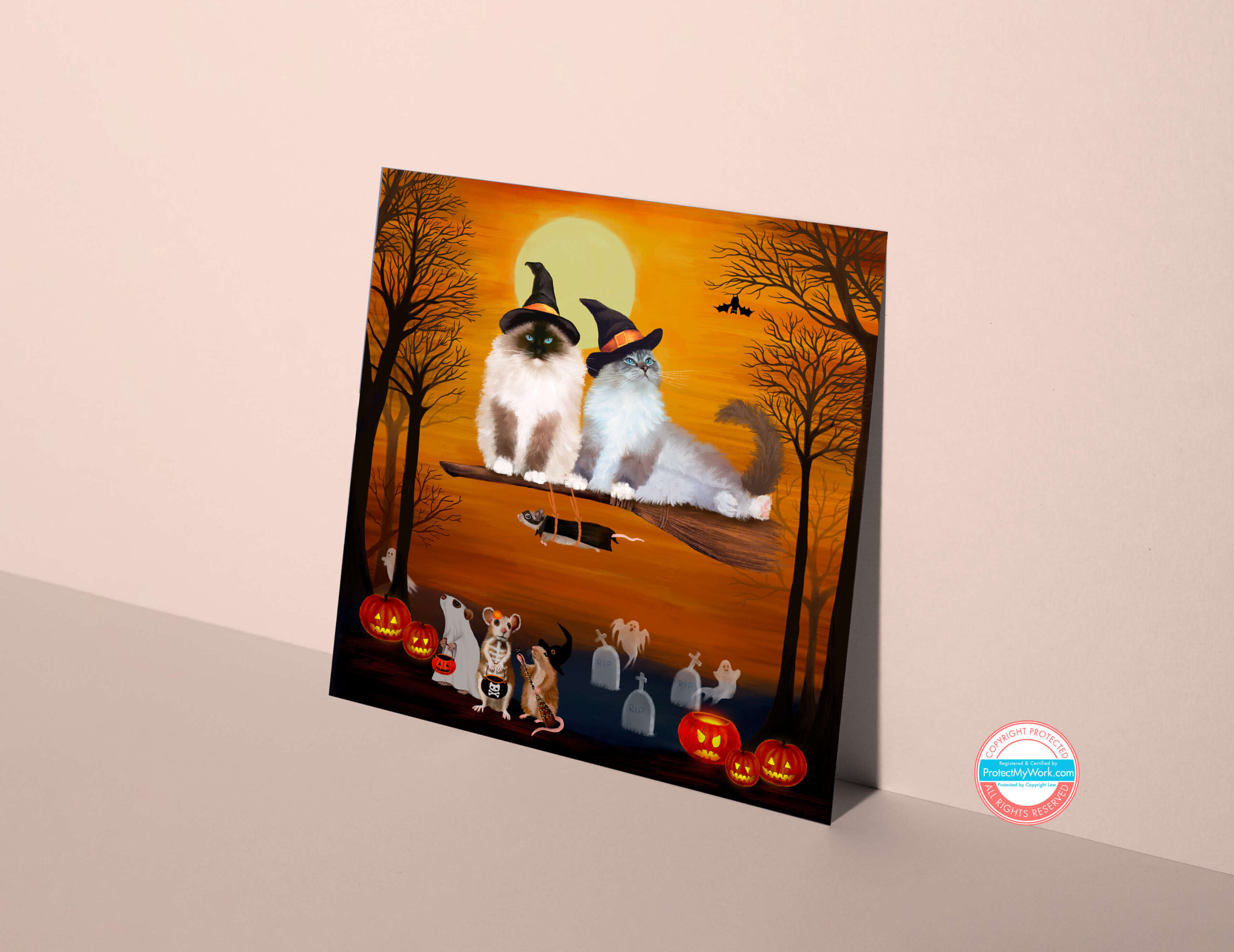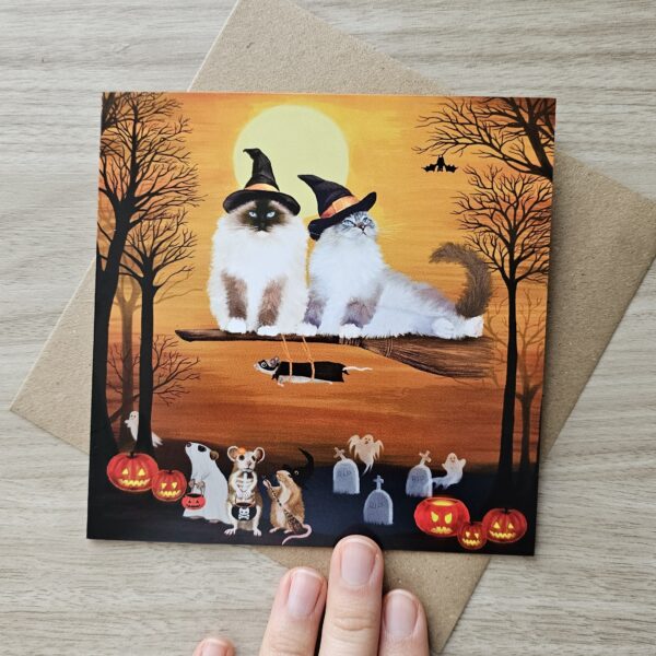 Cute ragdoll cat Halloween greeting card that will bring just the right amount of spook and magic into your day!
